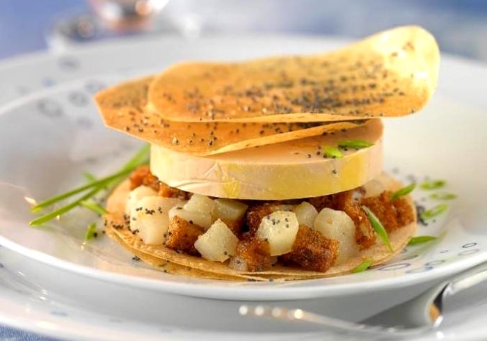 Millefeuille au foie gras mi-cuit et pain d’épice