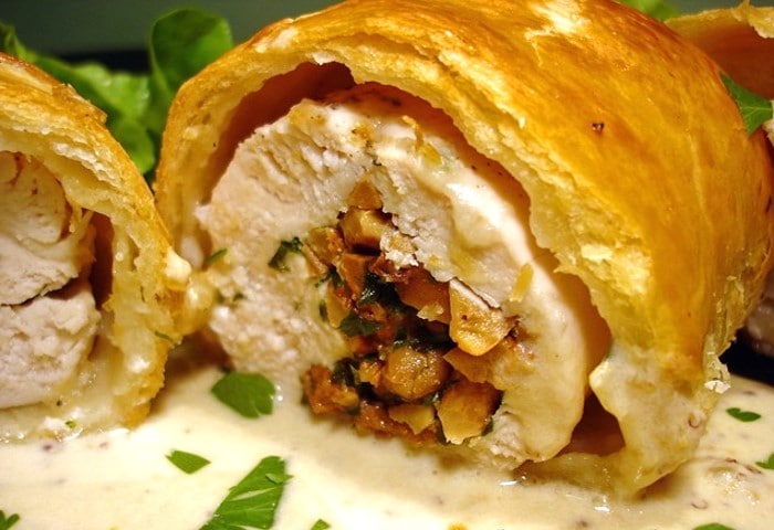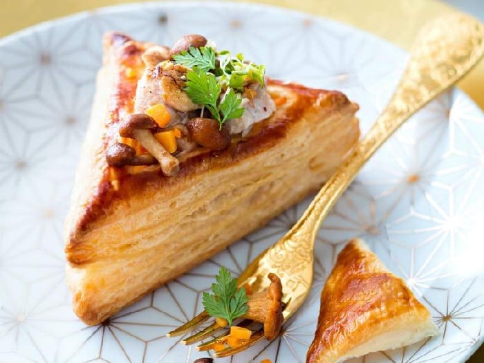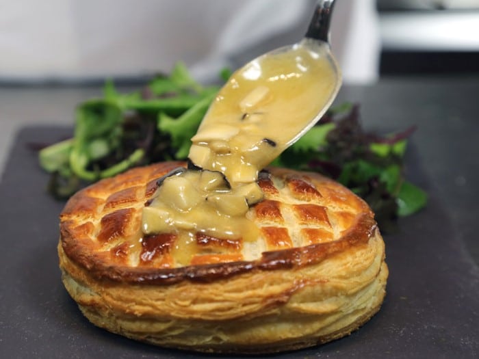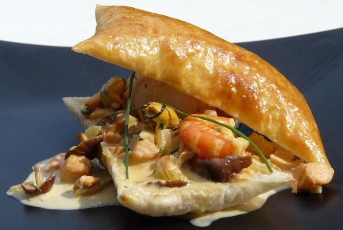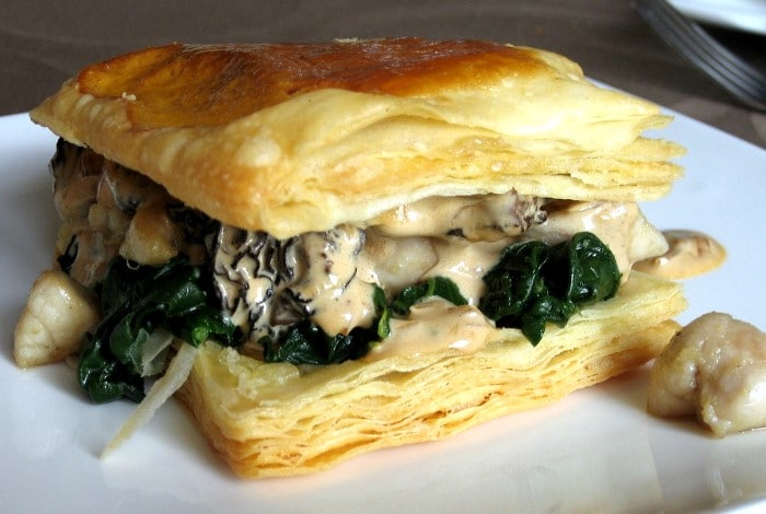 Feuilleté au ris de veau, morilles et pousses d’épinards