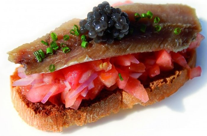 Bruschetta de sardine marinée et caviar