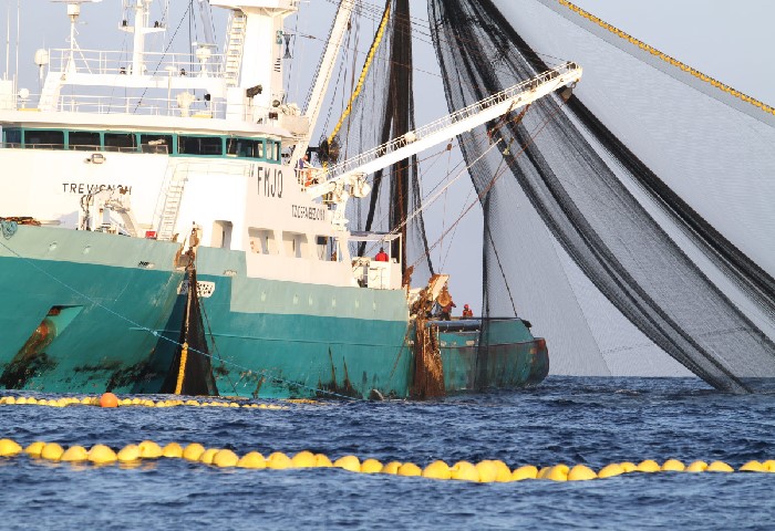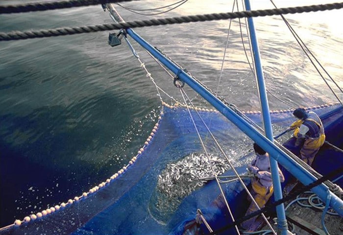 Retrait de la senne remplie de sardines