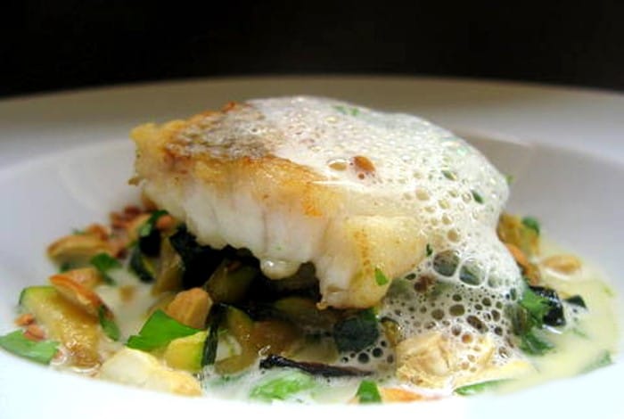 Pavé de maigre aux courgettes et émulsion de citron