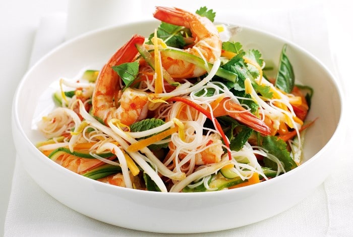 Salade vietnamienne aux nouilles de riz et aux crevettes