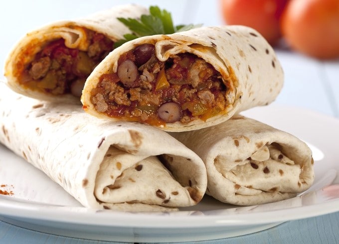 Burrito à la viande de bœuf hachée et aux haricots
