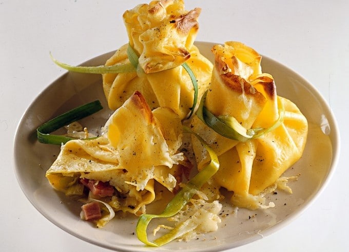 Fagottinis au speck et aux jeunes poireaux