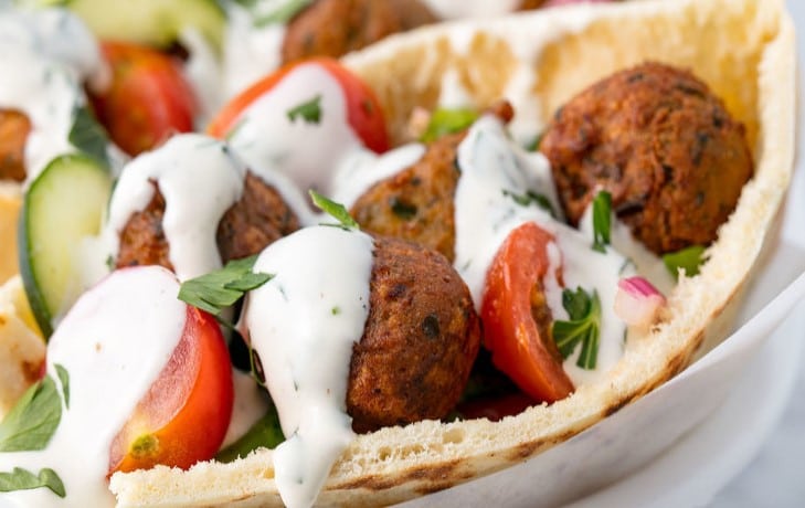Falafels et crudités sur du pain pita