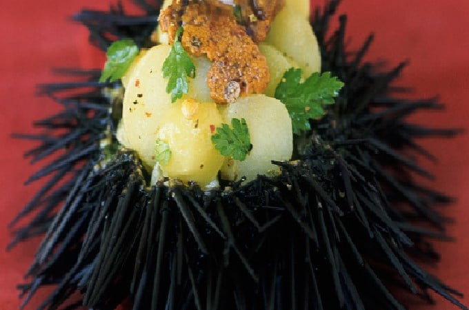 Oursin farci de salade de ratte au cerfeuil