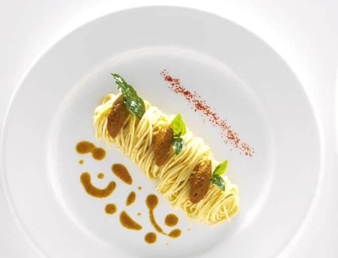 Spaghettis aux langues d’oursins et aux sommités de basilic