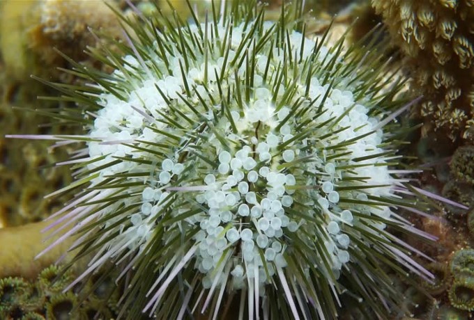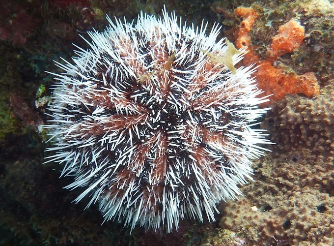 Oursin chardon blanc antillais (Tripneustes ventricosus)