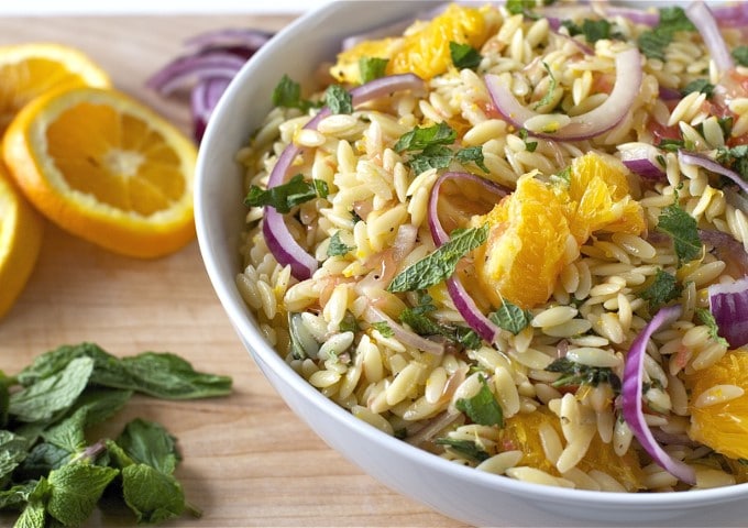 Salade d’orzo à l’orange, oignon et menthe