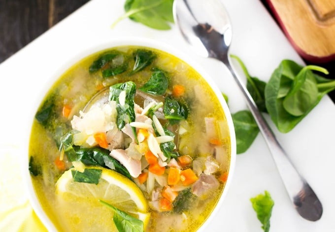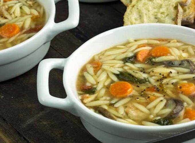 Soupe de pâtes orzo au poulet et légumes