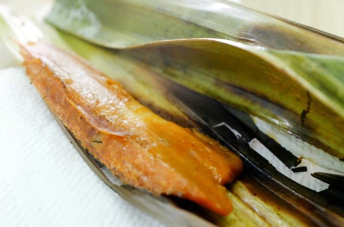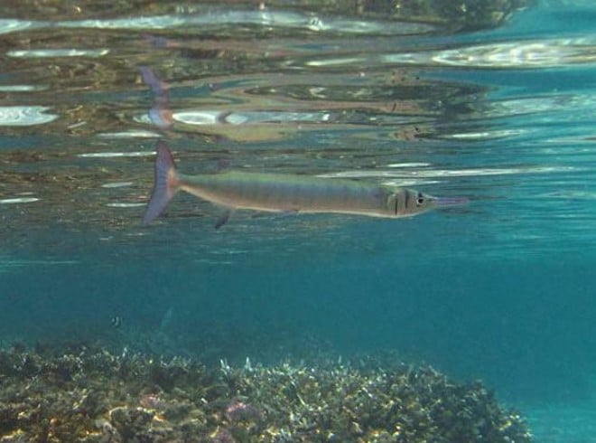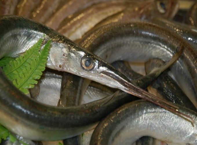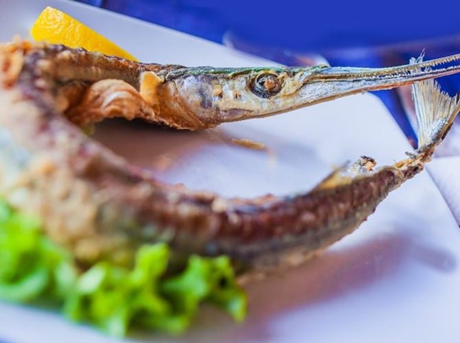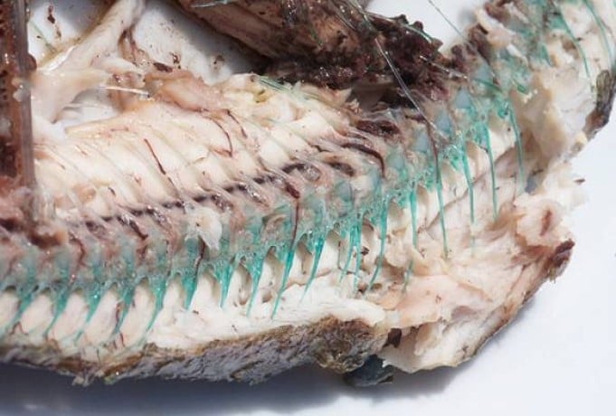 Arêtes bleu-turquoise de l’orphie cuite au four