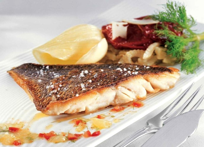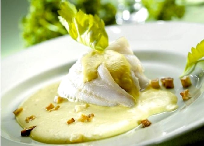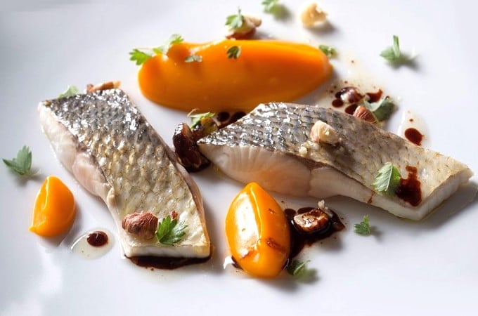 Féra du Léman pulpe de potimarron, noisettes et pimprenelles