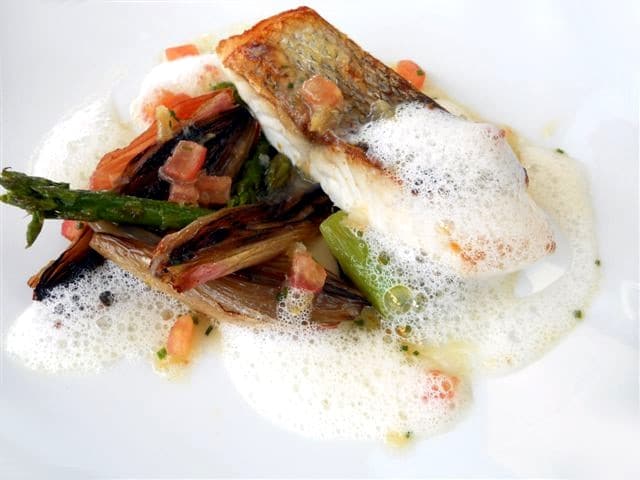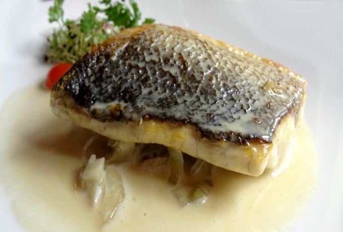 Filet de loup de mer au beurre blanc sur lit de jeunes fenouils