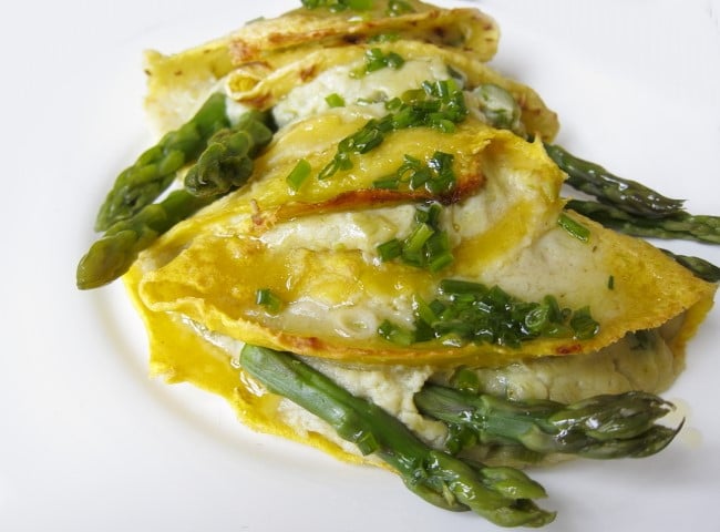 Crespelle aux asperges vertes et mousseline de pomme de terre