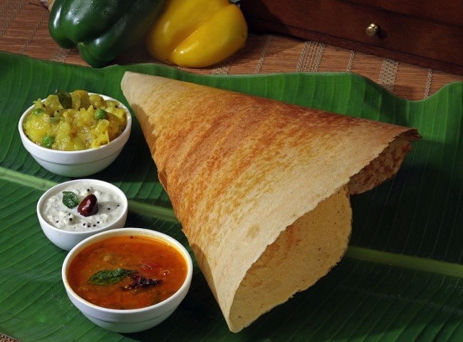 Dosa indien traditionnel et ses sauces d’accompagnement