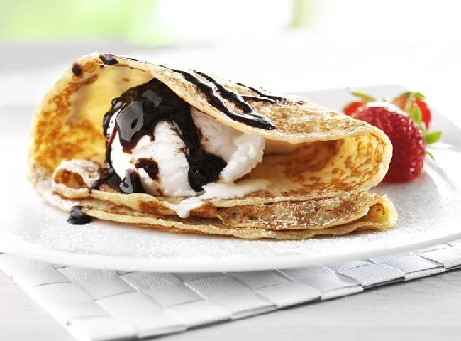 Pannenkoek hollandais à la crème glacée et sauce chocolat chaude