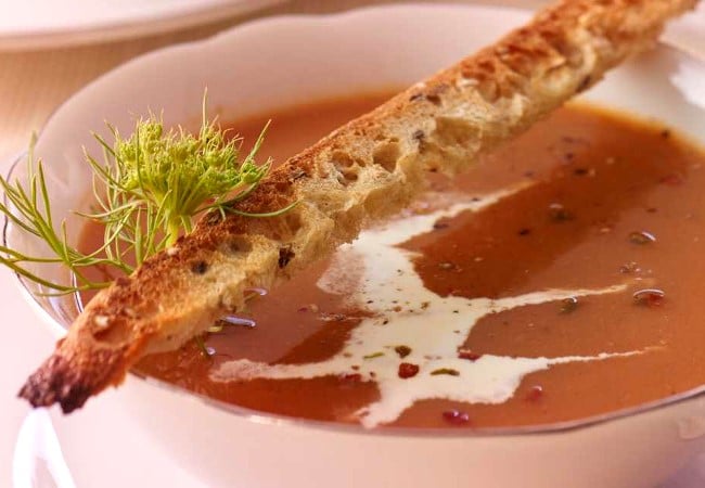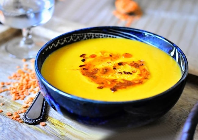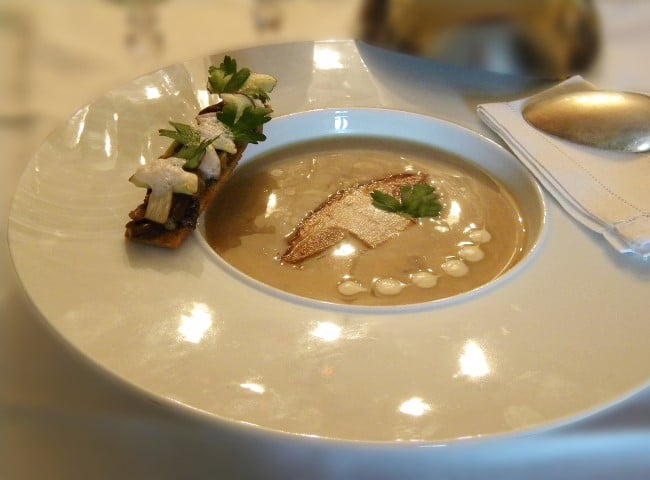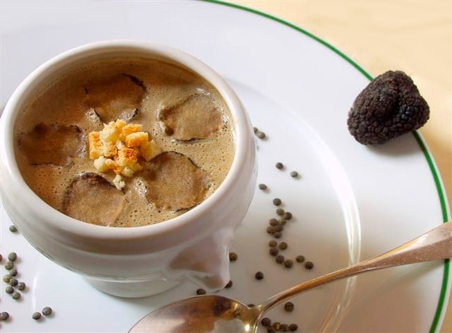 Crème de lentilles du Puy aux lames de truffe et croûtons dorés