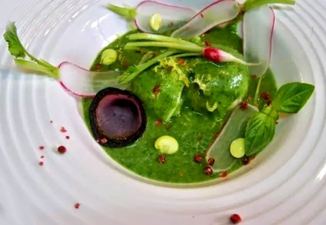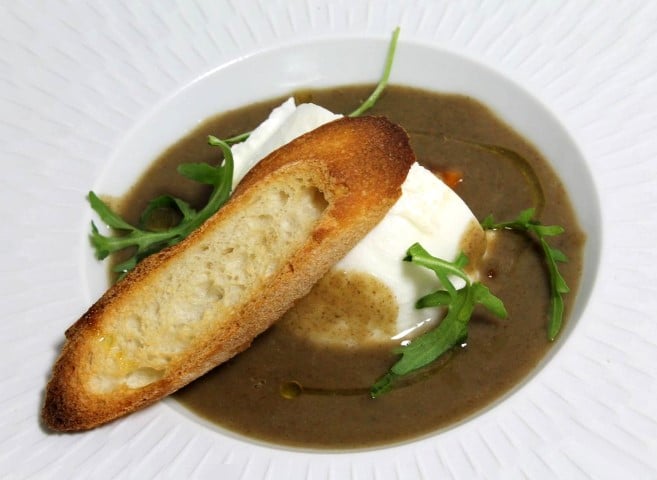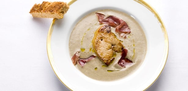 Crème de lentilles au foie gras poêlé et noir de Bigorre