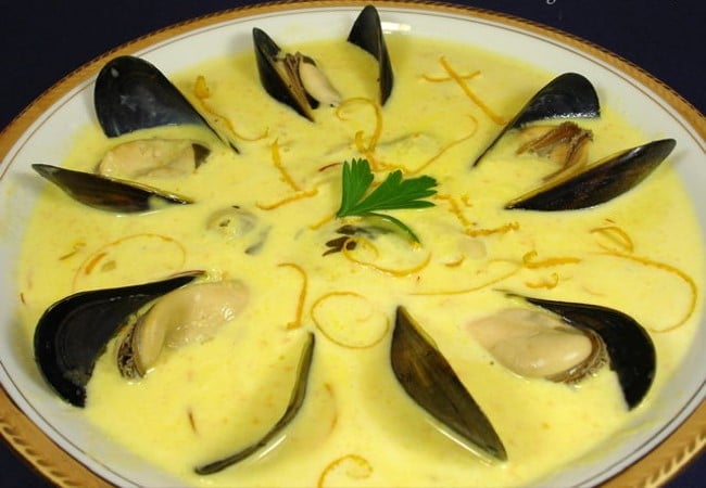 Crème de moules de bouchot au safran et zestes d’orange confits