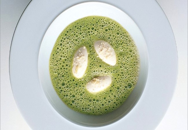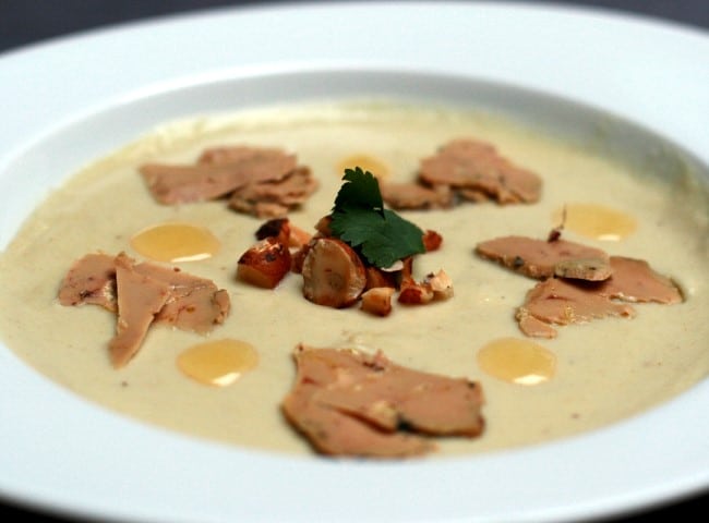 Crème d’artichaut au foie gras et noisettes torréfiées