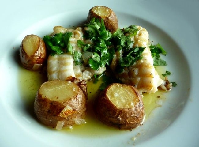 Filets de sabre noir aux pommes de terre en robe des champs aux fines herbes