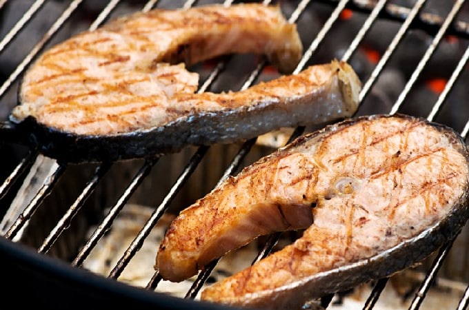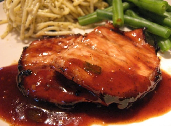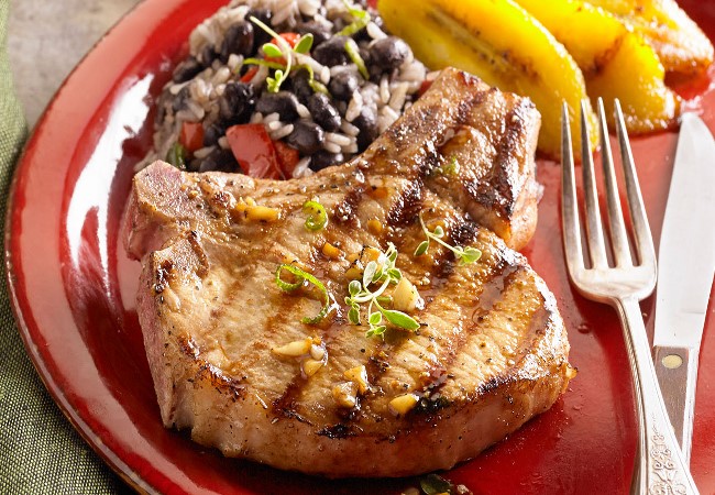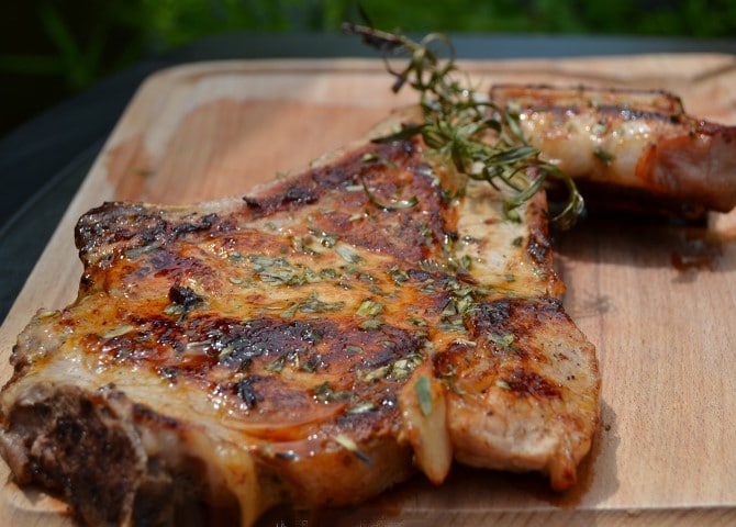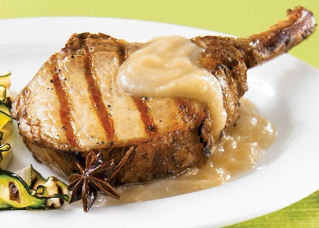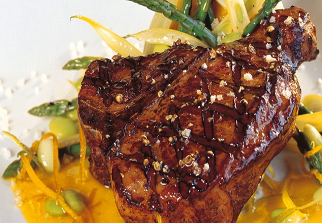 Côtelette de veau grillée aux asperges vertes, sauce aux agrumes
