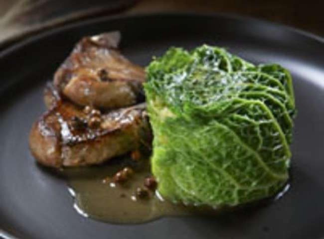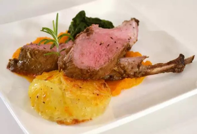 Côtelettes d’agneau rôties au romarin, gratin dauphinois et pousses d’épinards étuvées au beurre
