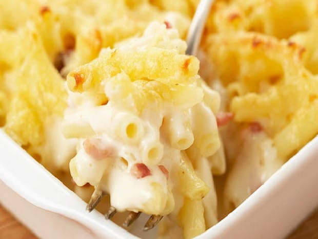 Gratin de macaronis fourrés au foie gras et jus de truffe