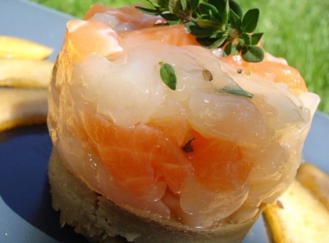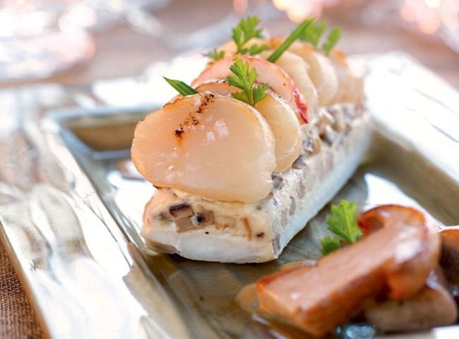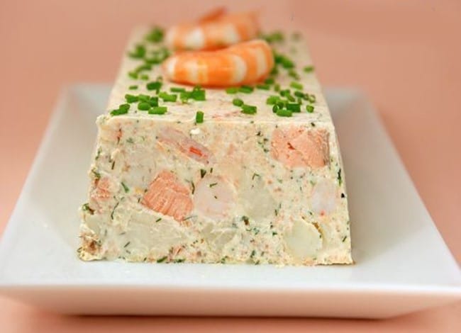 Terrine de coquilles Saint-Jacques, saumon et crevettes