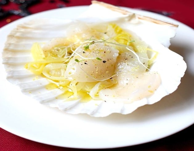 Coquilles de noix de saint-Jacques à la fondue de jeunes poireaux