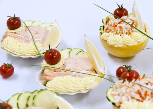 Coquilles froides de saumon et de crabe sauce mayonnaise