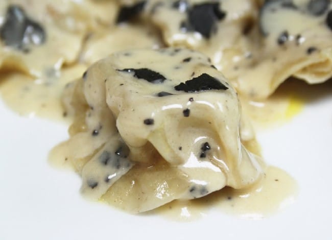 Ravioles de foie gras à la truffe dans leur crème à l’ail doux