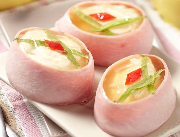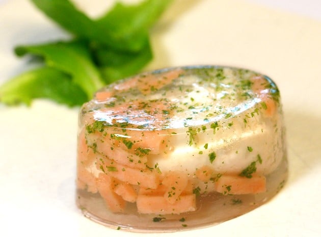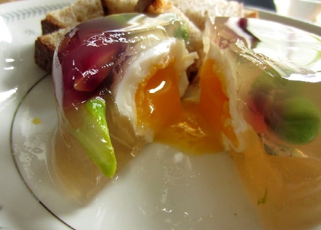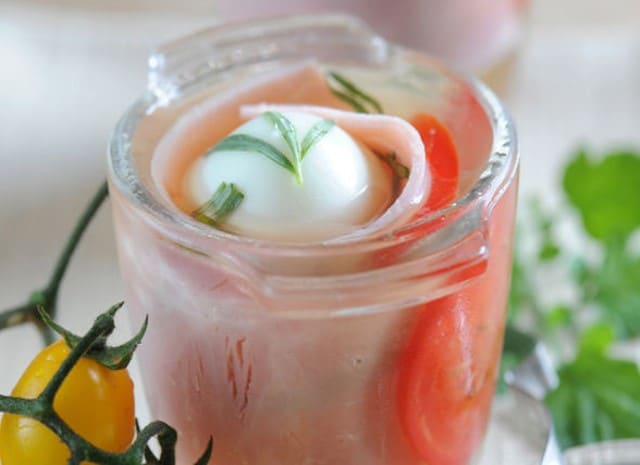 Bocal d’œuf en gelée au jambon, tomate et aux feuilles d’estragon