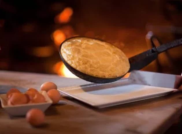 Cuisson au feu de bois de l‘omelette de la mère Poulard