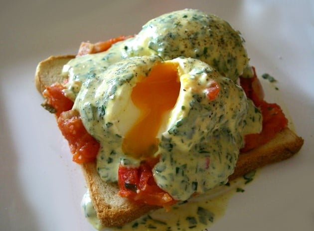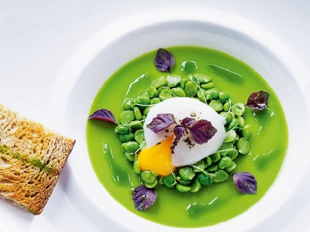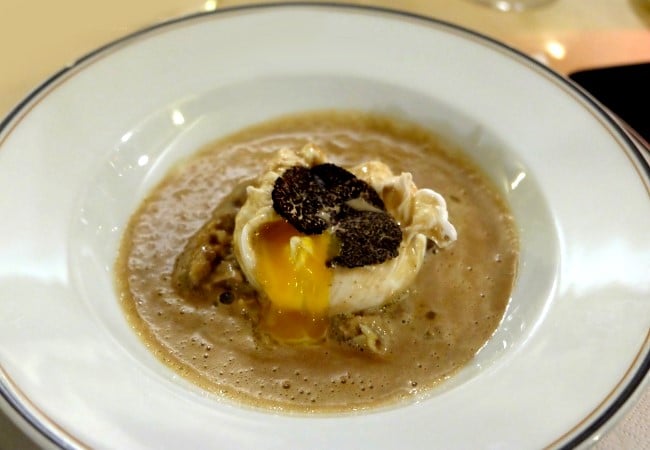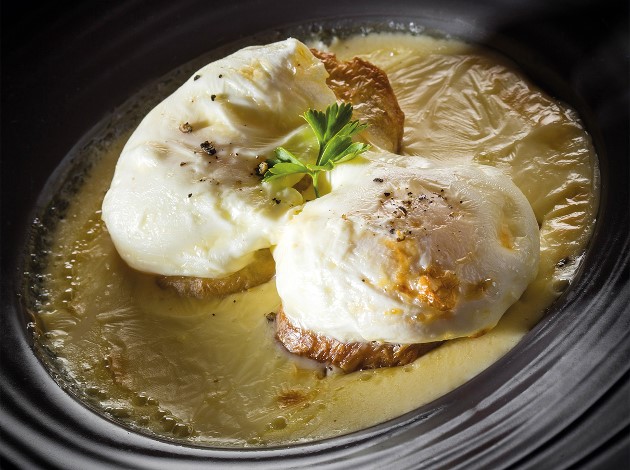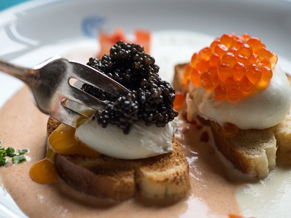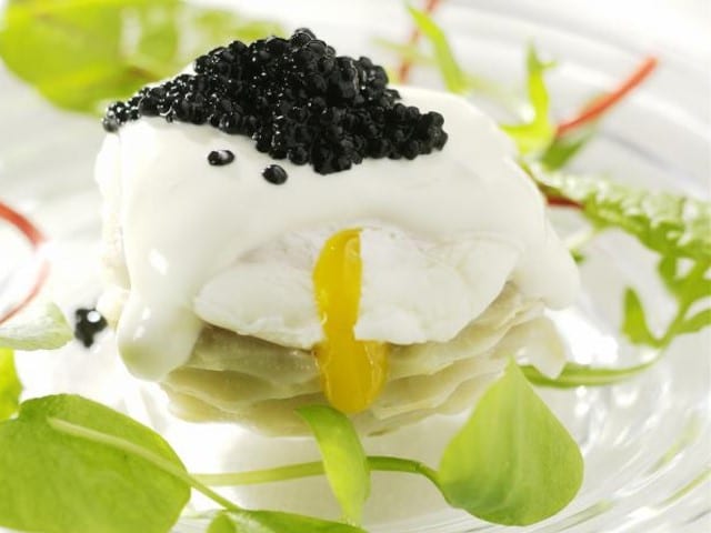 Œuf poché aux œufs de hareng sur fond d’artichaut