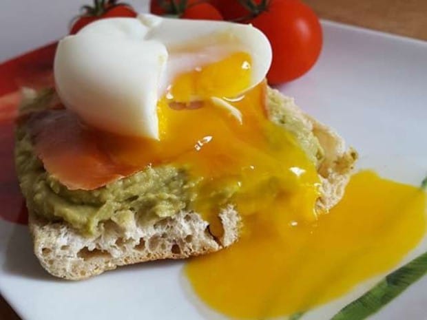 Œuf mollet au saumon fumé et guacamole sur pain toasté