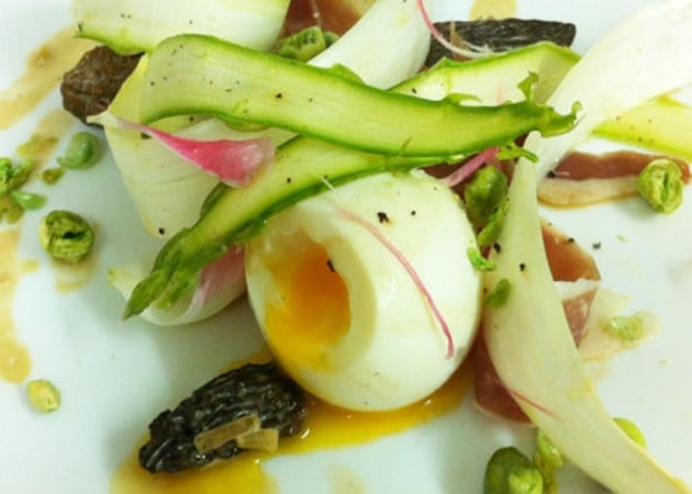 Œuf mollet aux morilles et gargouillou de jeunes légumes