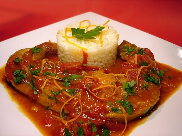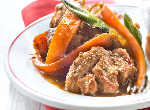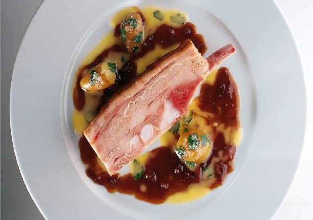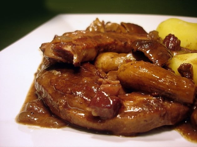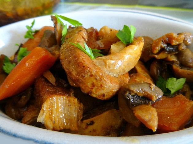 Tendron de veau de lait en sauté marengo aux pommes nouvelles