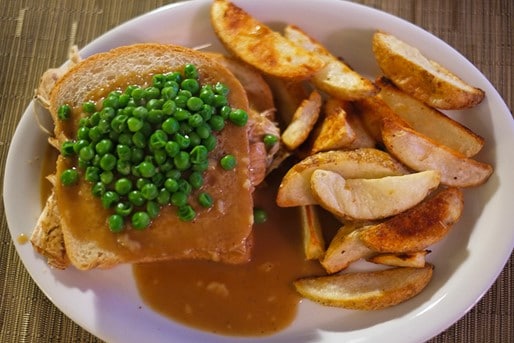 « Poulet chaud » à la québécoise ou galvaude garnie de petits pois