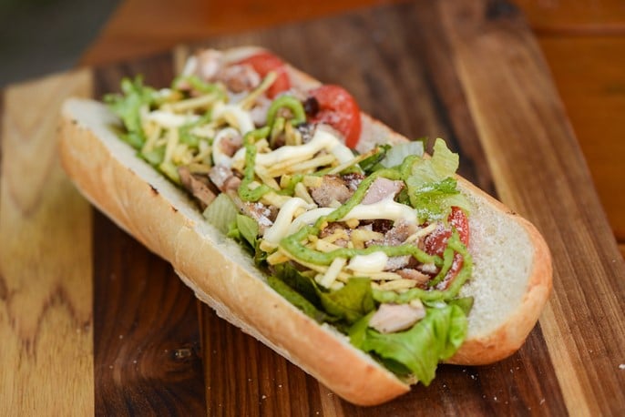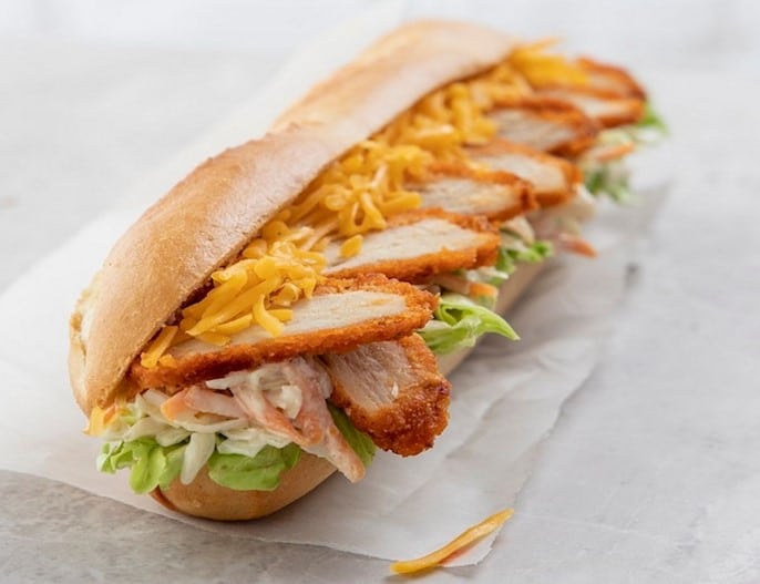 Sandwich de baguette irlandais au filet de poulet pané et cheddar