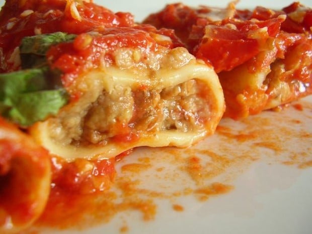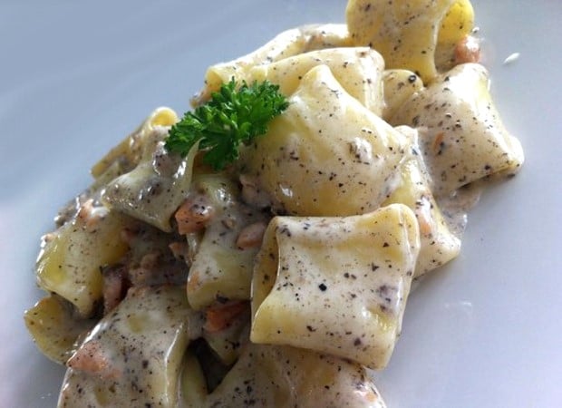 Paccheri farcis aux cèpes et pancetta à la napolitaine