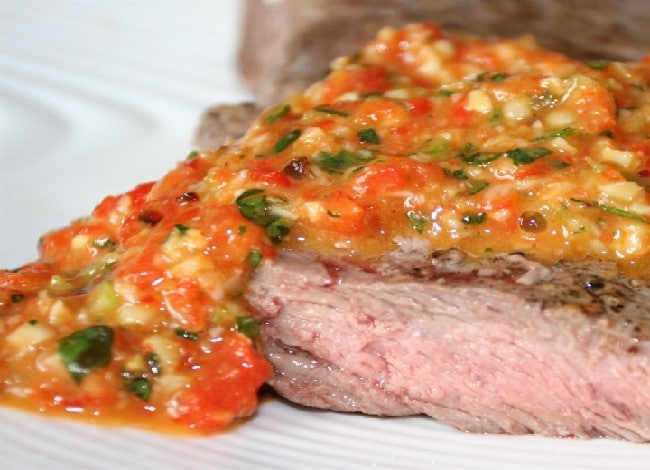 Asado de bœuf tranché au chimichurri rouge
