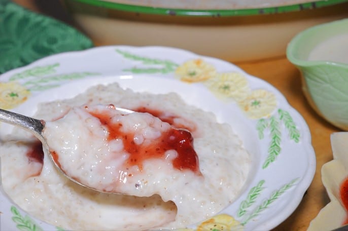 Hasty pudding à la confiture de fraise