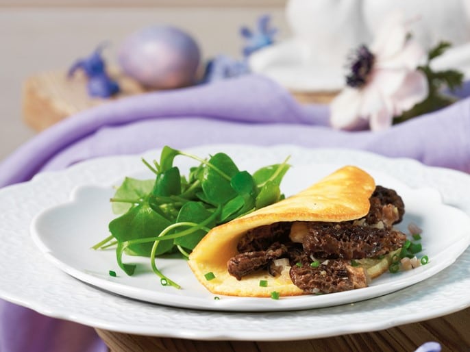 Omelette soufflée aux trompettes de la mort et aux fines herbes