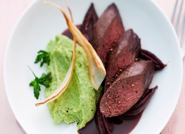 Filet de chevreuil grand veneur, mousseline de brocolis