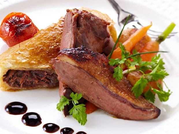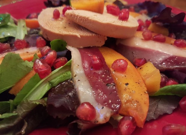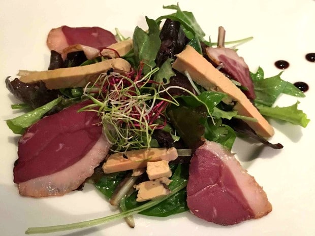 Salade de magret de canard et foie gras au vinaigre balsamique