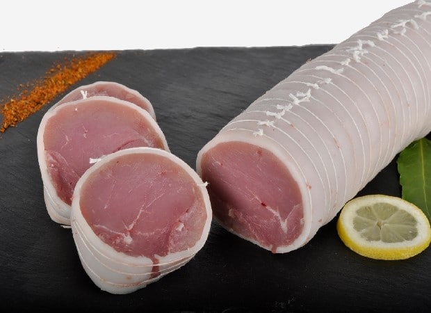 Filet de veau bardé et ficelé prêt cuire