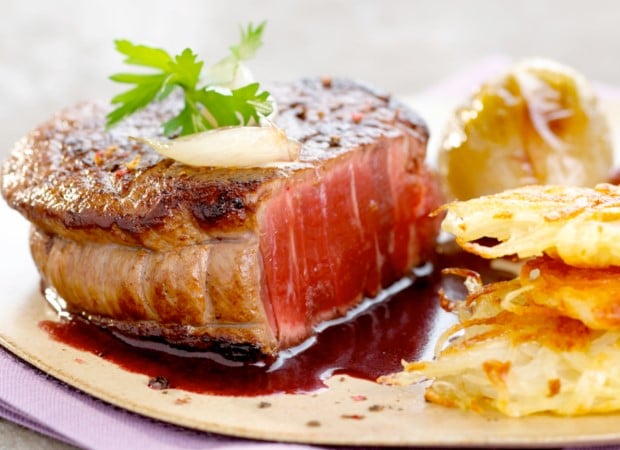 Filet de bœuf de Chalosse aux échalotes confites à la lie de vin