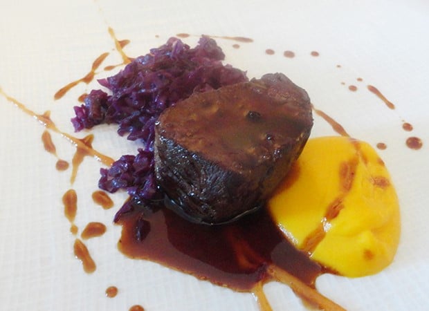 Filet de cerf de Boileau, chou rouge, purée de courge