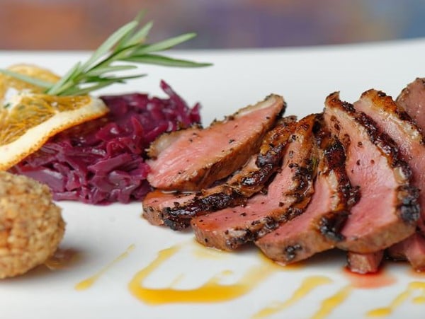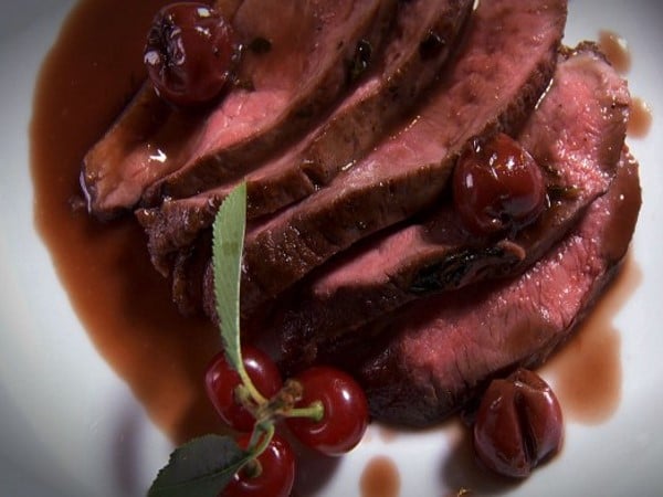 Suprême de canard aux griottes et jus au vinaigre de xérès